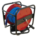 たくさんの便利機能を備えたエアーホースリールの決定版。優れた柔軟性の特殊PVCエアーホースを搭載