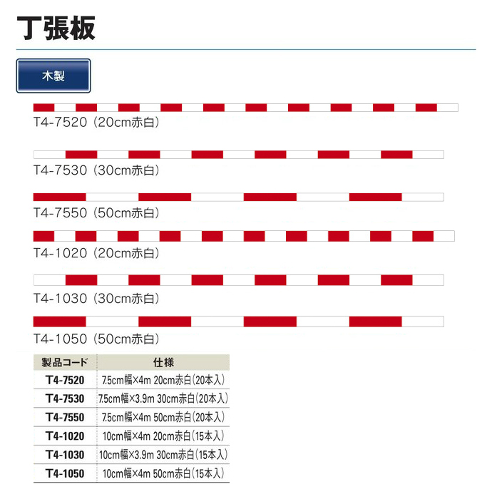 丁張板 10cm幅×4m 20cm赤白 15本入 T4-1020 [個人宅宅配不可]