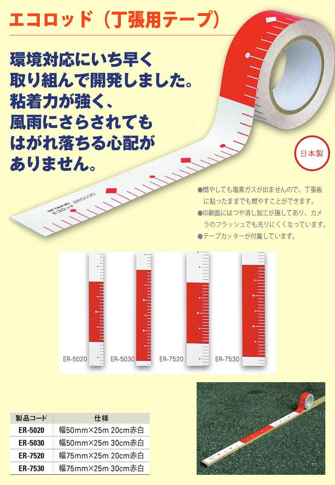 仕様:幅75mm×25m 20cm赤白