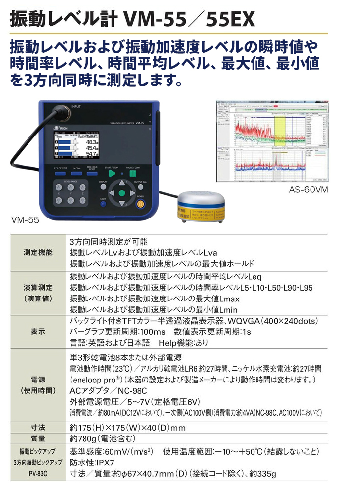 基準感度:60mV/(㎨) 使用温度範囲:-10~+50℃(結露しないこと) 防水性:IPX7