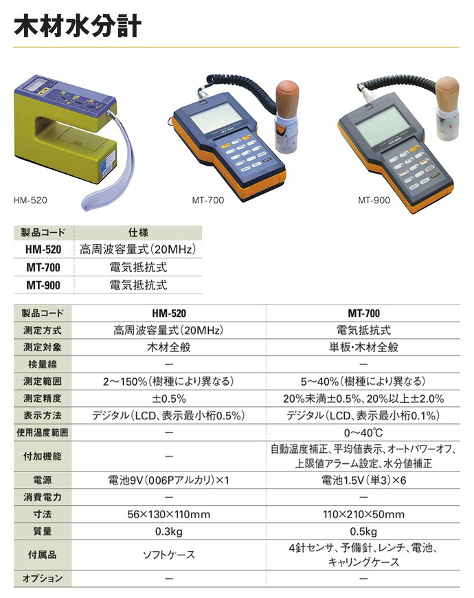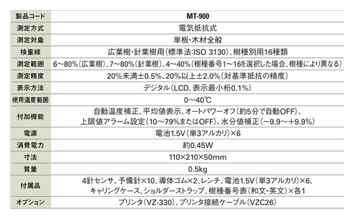 測定範囲:6~80%(広葉樹)、7~80%(針葉樹)、4~40%(樹種番号1~16を選択した場合、樹種により異なる)