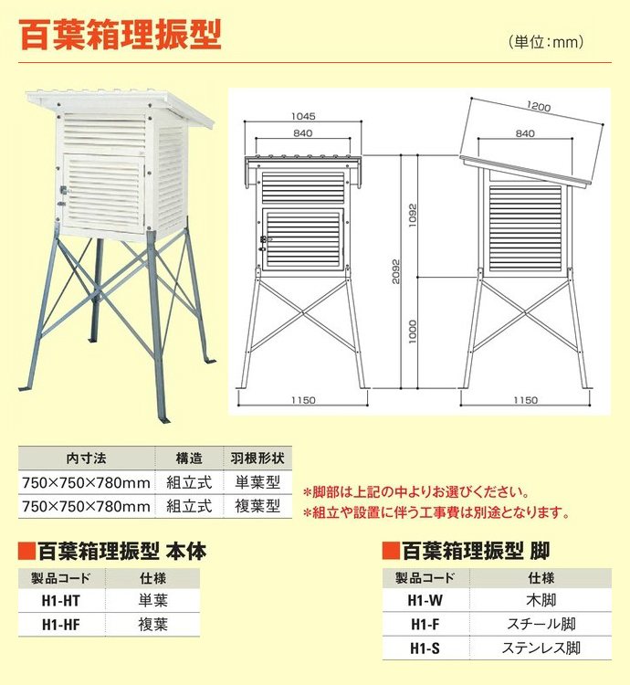百葉箱理振型用 脚 ステンレス脚 H1-S 大平産業 [個人宅宅配不可]